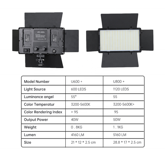 Lumière LED U800 pro, kit professionnel pour photo et vidéo tricolore