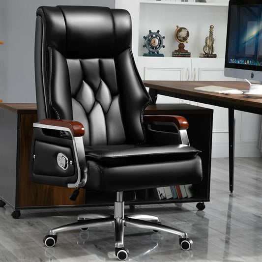Chaise de Directeur de bureau ergonomique moderne en bois massif et cuir