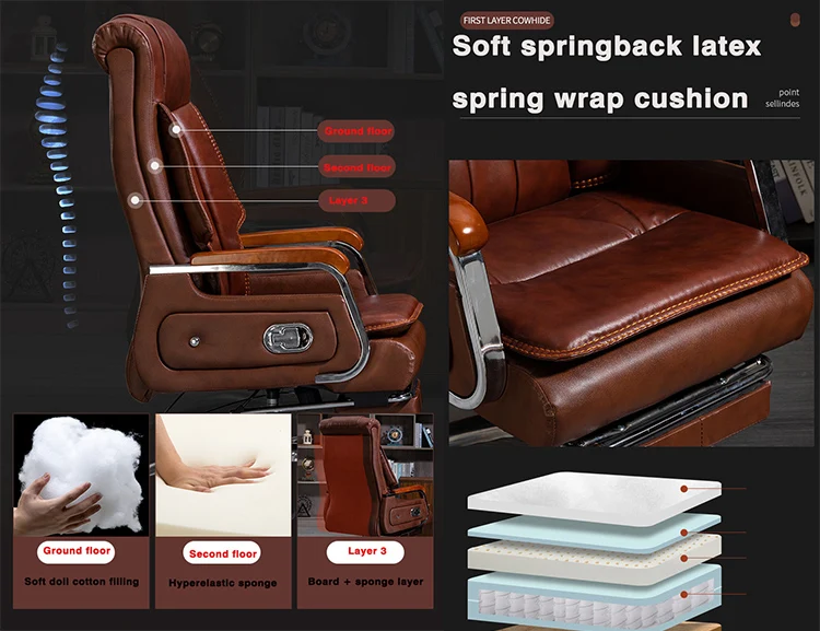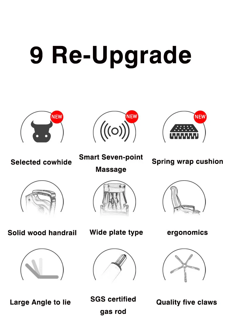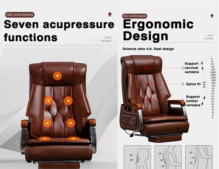 Fauteuil de Bureau Ergonomique de Direction en Cuir à Dossier Haut Avec Dispositif de Massage